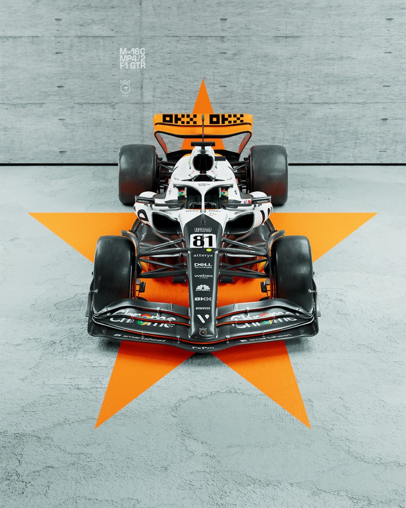 A marca completa 60 anos como equipe do esporte à motor neste ano e decidiu escolher três carros icônicos de sua história para formar a sua pintura especial. A traseira laranja é uma homenagem ao M16C/D, carro vencedor das 500 milhas em 1974 dirigido por Johnny Rutherford, a parte central branca homenageia o MP4/2 dirigido por Alain Prost em sua vitória em Mônaco na temporada de 1984, por fim a parte da frente do carro é preta em alusão à McLaren F1 GTR-BMW que venceu as 24 horas de Le Mans pilotadas por JJ Lehto, Yannick Dalmas e Masaroni Skiy em 1995.