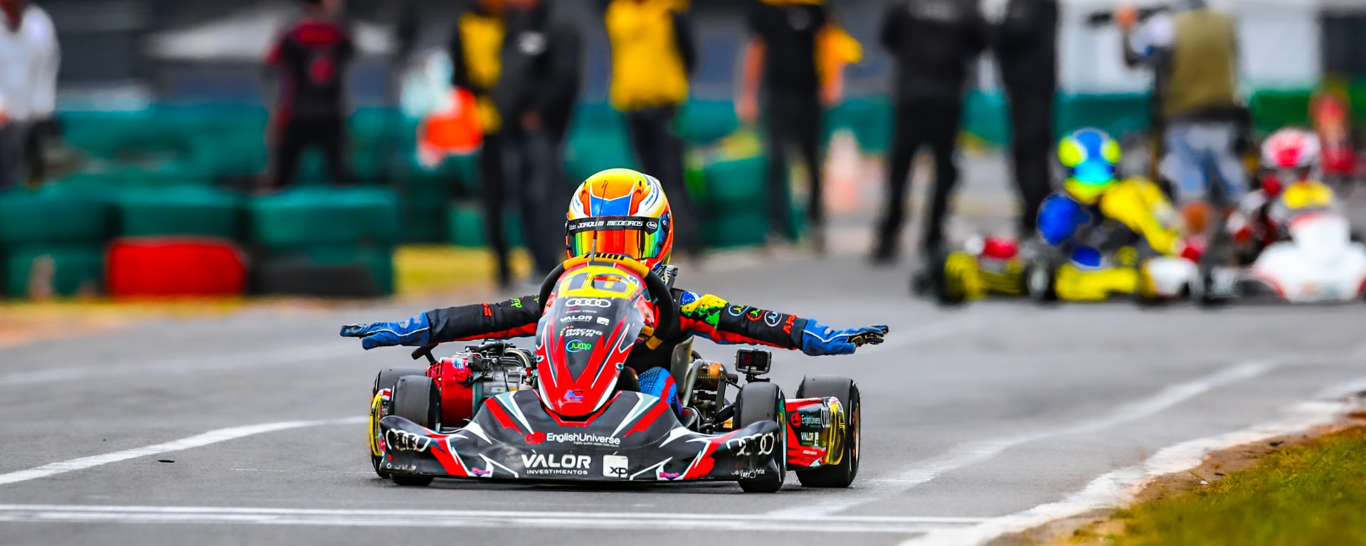 Uma exibição de gala marcou a participação do piloto capixaba Joaquim Medeiros (English Universe / Valor Investimentos / Audi Center Vitória / Jump Trampolim Park / Equipe: Marquinhos Performance / Coach: Caio Miguel – Race Data) na sétima etapa da Copa São Paulo Light de Kart. Com uma performance impecável, o representante do Espírito Santo conquistou uma vitória incontestável, ampliando ainda mais sua liderança na categoria Mirim e dando um passo importante rumo ao título da temporada.