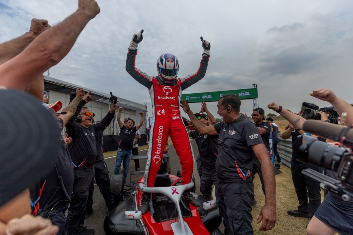 A primeira de Cadi — O sábado bem-sucedido para a TMG Racing teve sequência no período da tarde quando Cadi Baptista conquistou sua primeira vitória na BRB Fórmula 4 Brasil. O paulista de 17 anos tirou proveito da sua posição de largada e liderou de ponta a ponta para tornar-se o oitavo piloto distinto a triunfar na temporada 2025.
