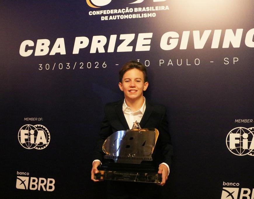 Theo Morgado recebeu troféu em homenagem ao seu terceiro título de campeão brasileiro de kart em dois anos